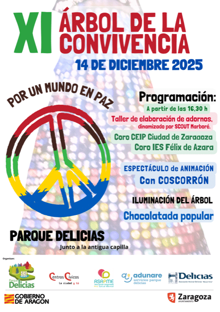 Desde la junta de distrito nos llega esta información: Desde hace once años el Grupo Parque Delicias, organiza el Árbol de la Convivencia. Animamos a participar